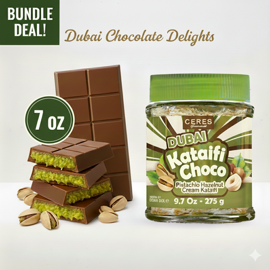 Dubai Chocolate Bar & Jar - 7 oz Pistachio Bar and 9.7 oz Dubai Choco Jar