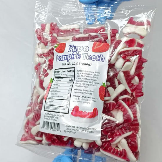 Add a fun and flavorful twist to your candy collection with Ceres Gourmet Vampire Teeth Gummies. A perfect choice for novelty candy lovers, candy variety pack builders, and themed party treats.