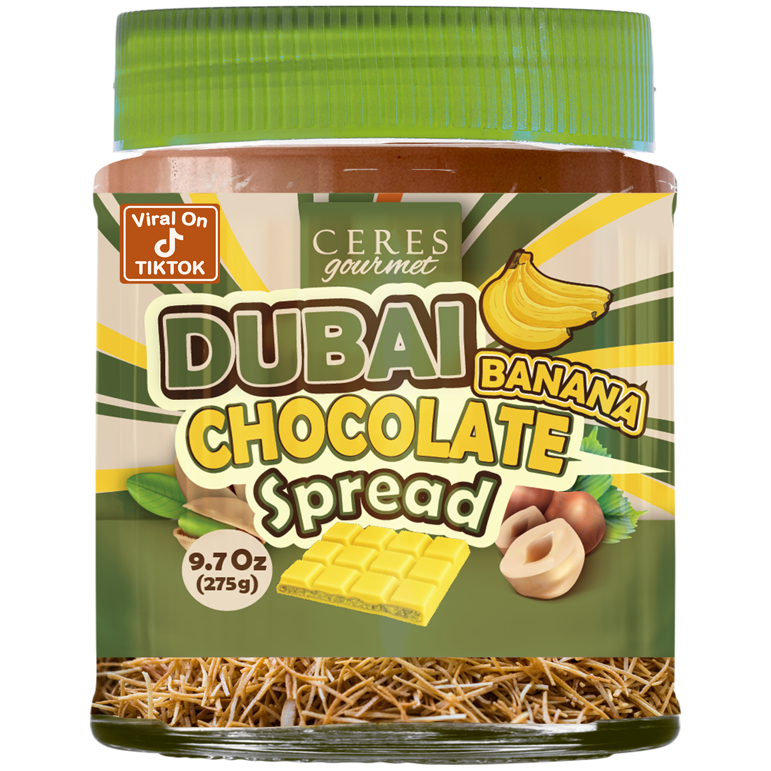 Viral Spreadable Dubai Chocolate – 9.7 oz (275 g) | Pistachio & Kataifi Layers with Freeze-Dried Fruit